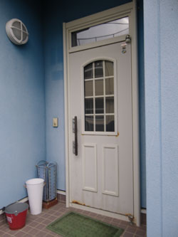 壁を鮮やかな空色に、玄関を木目調に! ロッジ風の自然を感じさせる雰囲気に仕上がりました。 毎日清々しい気分で過ごせますね♪♪
